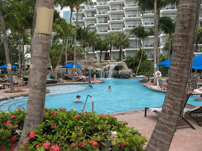 The Aruba Marriott Resort has a beautiful lagoon-like swimming pool, complete