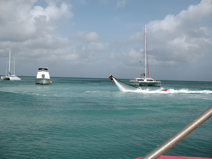 version of flyboarding, where you are strapped into water-jet-powered booties