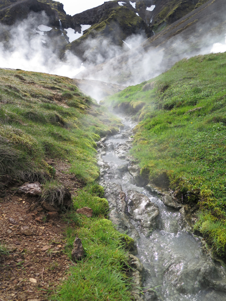 Thermal vents and glacial streams like these are an intriguing sight throughout